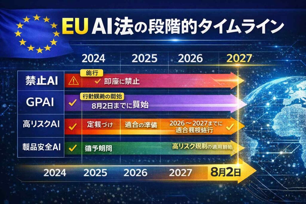 EU AI法(EU AI Act)とは? 2027年までのタイムラインと日本企業の実務対応アイデア【中小企業・スタートアップの視点】── 実務者の「不安」を整理し、明日から動けるようにするための決定版ガイド