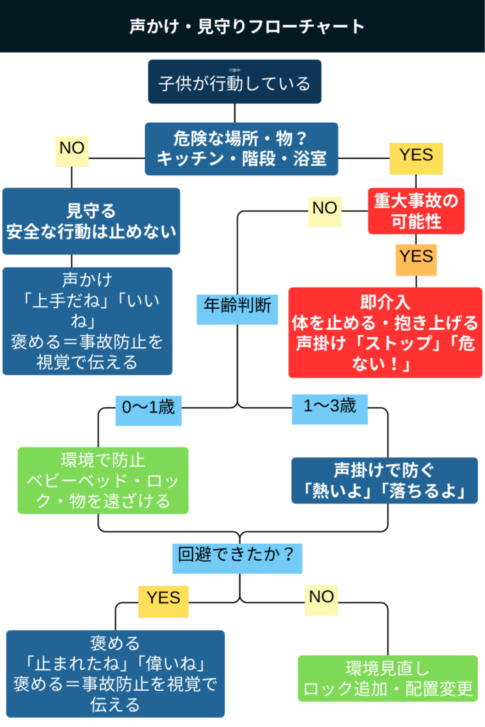 幼児の事故を防ぐ「声かけ・見守りフローチャート」